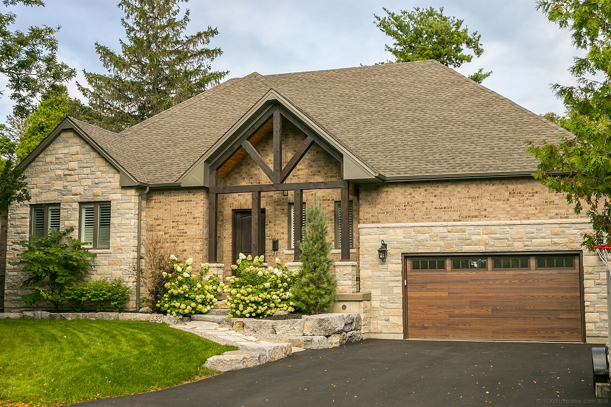 Tucked away on a quiet cul-de-sac in the heart of Ancaster, this stylish, custom-designed 3 bedroom bungalow offers over 4,200 sqft of finished living space on 2 levels. Relaxed, casual elegance & a contemporary decor welcome you from the moment you walk thru the door. The open concept Great Room houses the kitchen, dining & living areas & is flooded with natural light from expansive windows that overlook a saltwater pool. Features scraped hickory floors, 10′ ceilings on both levels, a B/I speaker system & a stunning finished lower lvl. The gourmet kitchen is a chef’s delight featuring pro grade appliances, large centre island & beverage bar. A mudroom with B/I cabinetry, hooks & storage is perfect for the busy family. Relax in your MB retreat with W/I closet & spa-like ensuite bathroom. Two additional bedrooms on the main level have their own ensuite bathrooms & B/I cabinetry. The spacious LL is an entertainer’s dream with large recroom, wet bar, games area, sound proof music/media rm, powder & laundry rms & storage areas. The walk out from the kitchen leads you to a covered terrace & outdoor kitchen area featuring a wood burning pizza oven! The fully fenced backyard is surrounded by mature evergreens. A natural stone terrace surrounds the L-shaped pool & leads to the cabana area & hot tub. Ideal for car enthusiasts, there is a 3 car garage with 16′ ceilings. This beautifully maintained home was constructed in 2016 & offers top quality materials & finishes. Steps to downtown Ancaster! Photos by Vogel Creative.